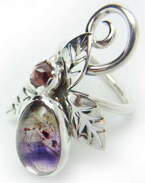 スーパーセブンとガーネットの植物モチーフのリング