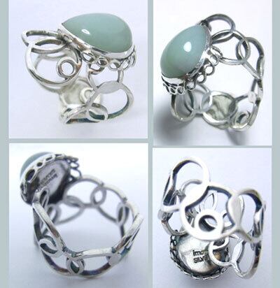 ベビーブルーオパール 泡のようなレーシーデザインリング