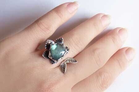 ペンタゴンカットのラブラドライトライトリング