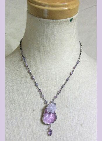 クンツァイトと結晶アメジストのネックレス