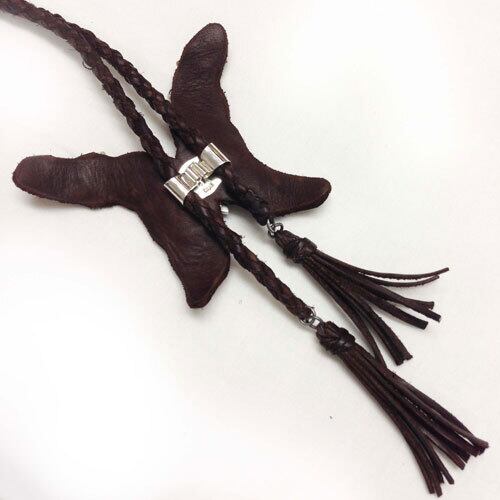 シェルと水晶の蝶ちょモチーフレザーループタイ