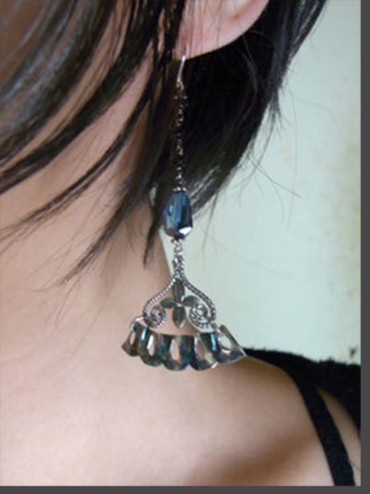 ロンドンブルートパーズが輝く扇デザインのロングピアス(在庫確認中)