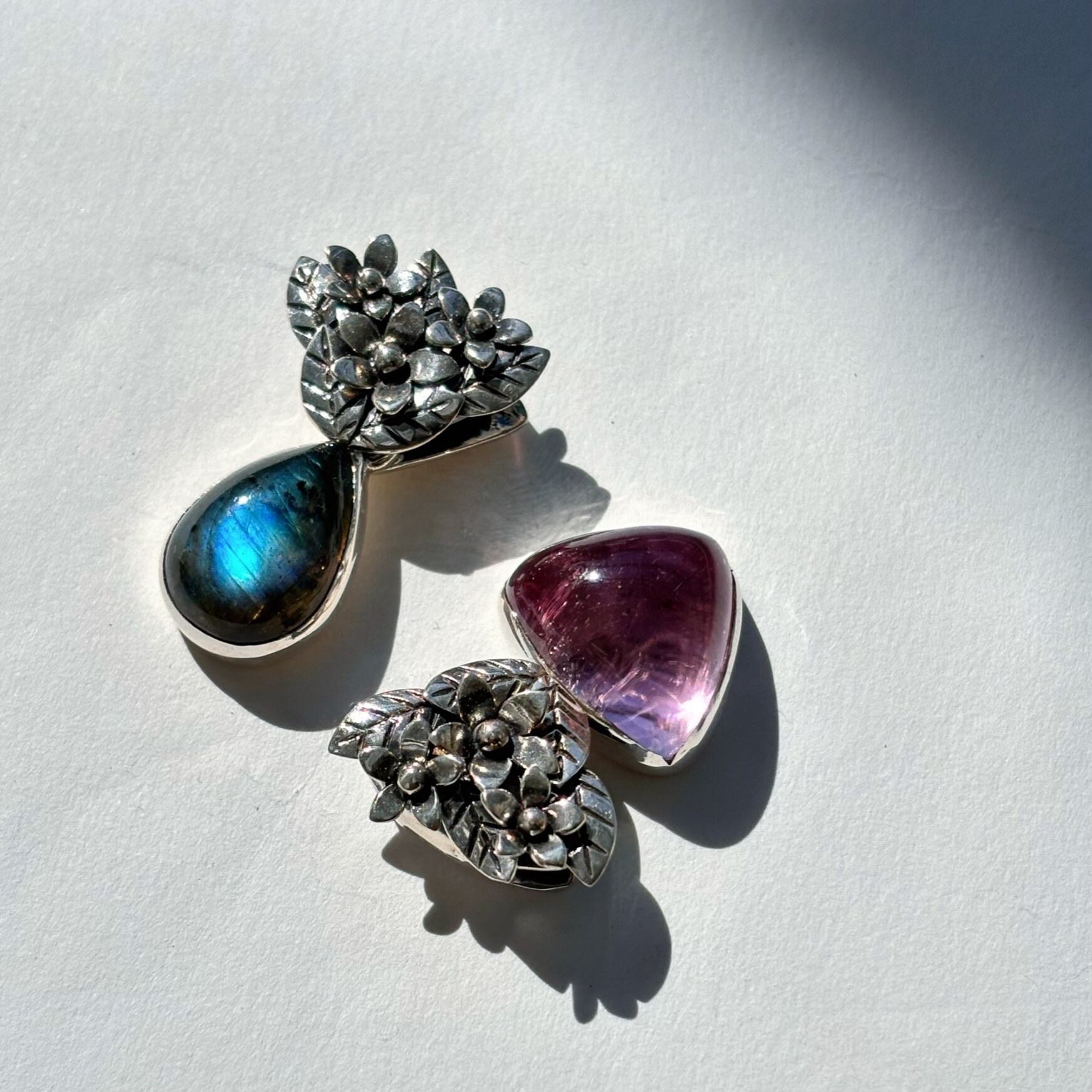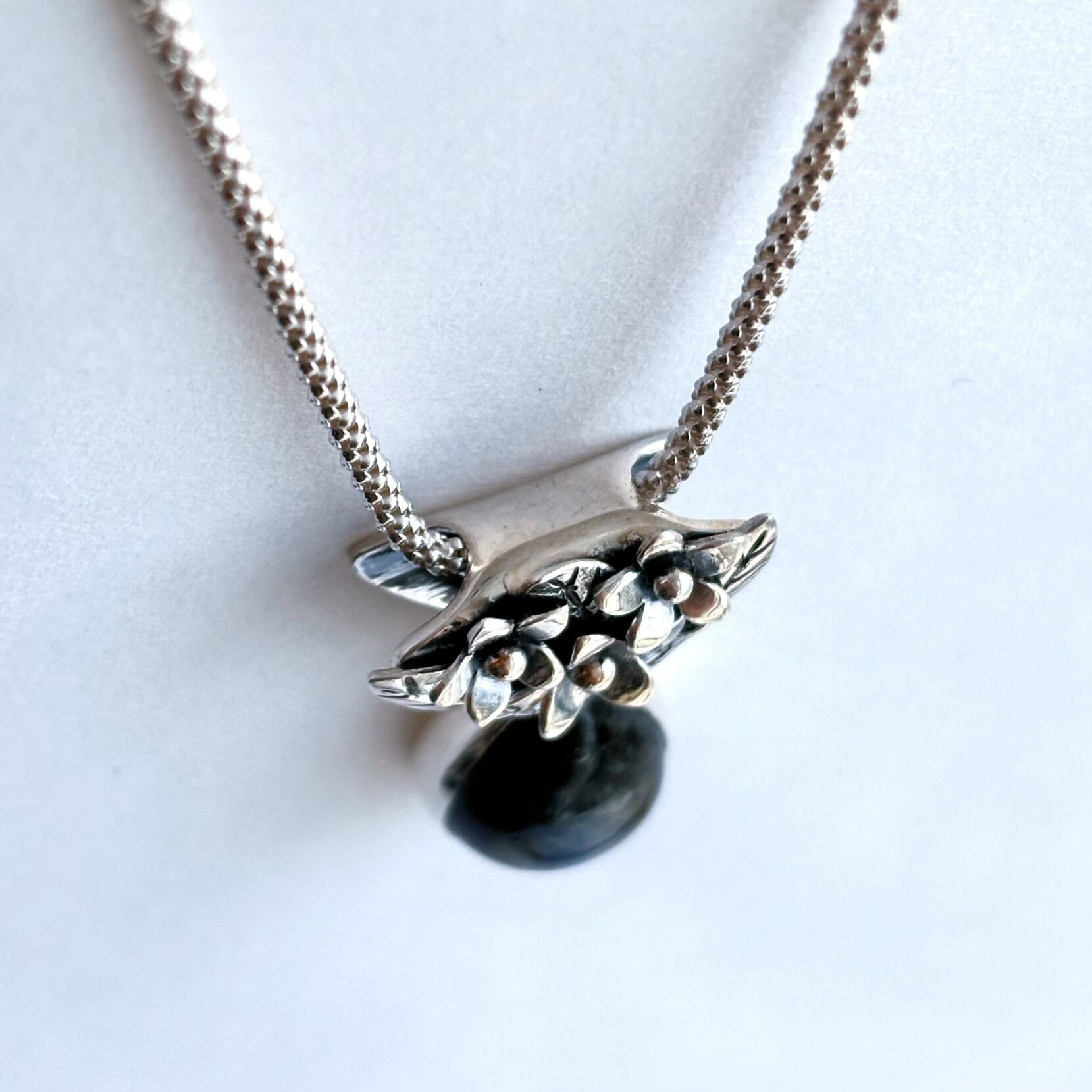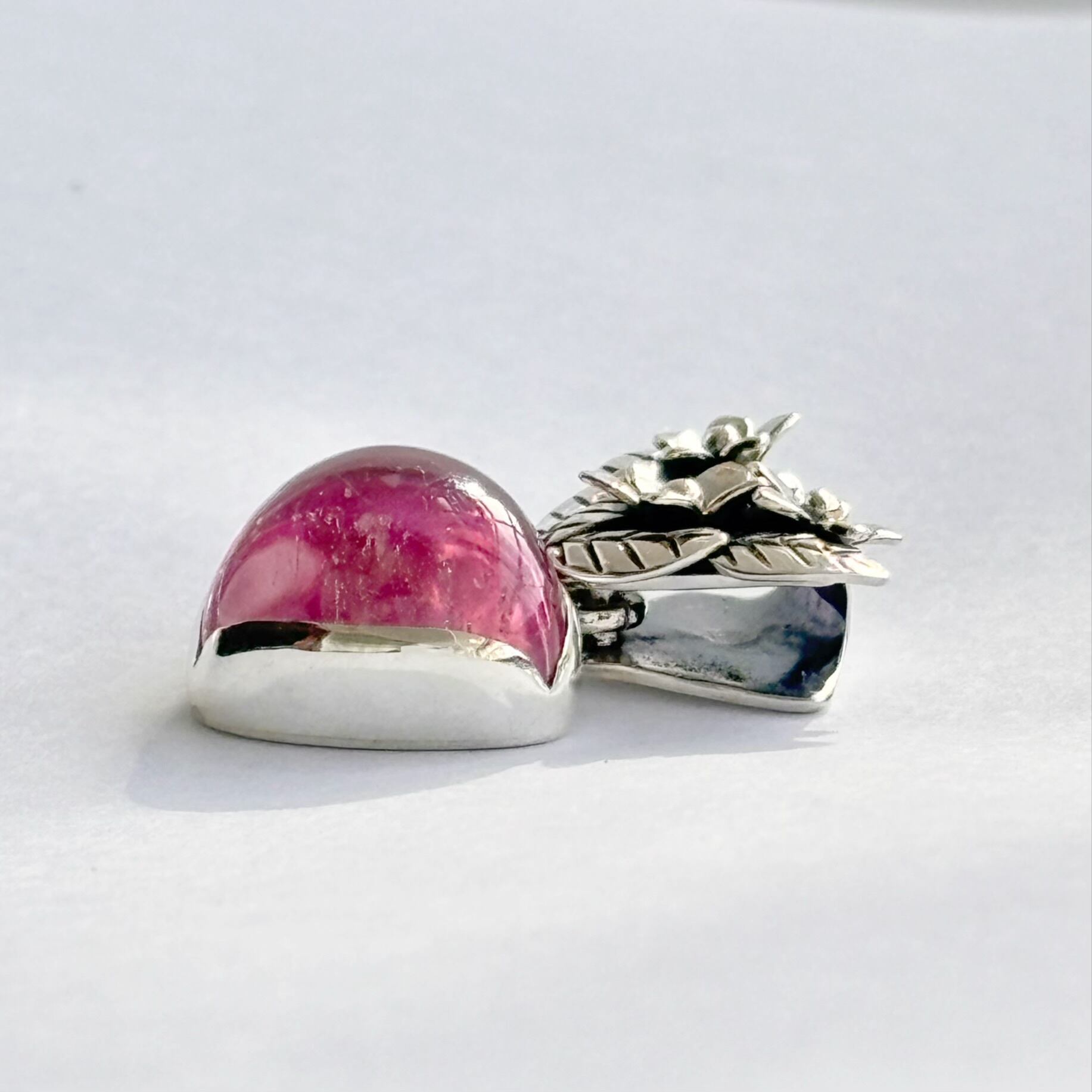 ふっくらクンツァイトのフラワー&リーフペンダントトップ